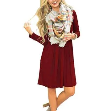 Show moreIntroducing the **AUSELILY Women’s Long Sleeve Pleated Loose Swing Casual Dress**, a perfect blend of comfort and style. Made from premium quality, soft, and stretchy fabric, this knee-length dress provides a delightful wearing experience without compromising on style. The chic pleated design not only enhances the dress's light and airy feel but also ensures it is exceptionally easy to care for, with no shrinkage concerns. Available in a stunning **Wine Red** along with a variety of other colors, this dress is versatile enough to fit elegantly into any wardrobe.