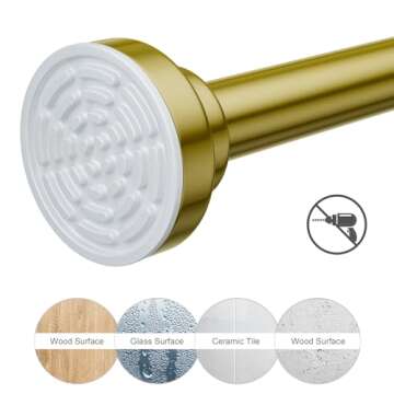 Show more Introducing the Ausemku Shower Curtain Rod Tension, your new essential for home organization and style! Crafted with the latest non-corrosion technology, this stunning golden yellow tension rod is designed to resist rusting in any environment, ensuring longevity and durability. Made from heavy-duty high-strength steel tubing, it offers remarkable support with a loading capacity of up to 25lbs. Enjoy the elegance and functionality of this versatile product, whether enhancing your bathroom or beautifying another space in your home.