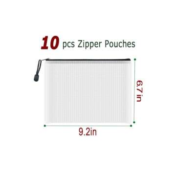 AUSTARK 10 Pcs Zipper File Bags, Waterproof Plastic Mesh Pouch for Office School, Board Game Storage Bags (A5 Size 9.2''x6.7'', White and Black)
