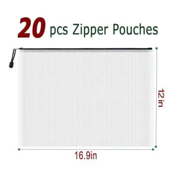 Show moreDiscover the ultimate storage solution with the AUSTARK 20 Pcs Zipper File Bags. Perfectly designed in an A3 size (16.9 x 12 inches), these handy pouches are crafted from high-quality PVC plastic, ensuring they are both soft and flexible while being robust enough to withstand daily use. These versatile organization tools are ideal for various environments such as offices, classrooms, at home, or even while traveling. With their transparent mesh design, you can easily see the contents while keeping your items protected and organized.