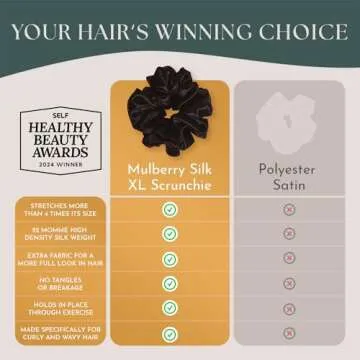 Authentic Mulberry Silk Scrunchies for Women, Anti Breakage Hair Ties for Curly Thick & Thin Hair, No Dent, No Pull, 100% Silk for Buns, Ponytail Holders & Sleeping, Onyx Black Color (1xl-4x skinny)