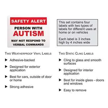 Autism Safety Alert Window Clings and Decals for Car and Home (4-Pack)