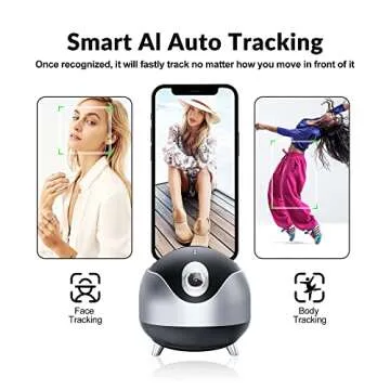 Auto Face Tracking 360 Camera Tripod for Cell Phone Rotating with Remote, iyesku 2-Axis Smart AI Face Recognition 360 Selfie Stick Rotation Tripod Mobile Phone Holder TikTok Camera Tripod (Black)