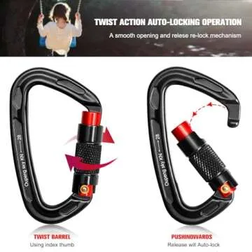 Auto Locking Carabiner Clips - 28KN (6172lbs) Heavy Duty Caribeaners ,2PCS Large Carabiner Clip for Keychains,Hammock,Camping, Gym, Hiking, Outdoor ,Dog Leash