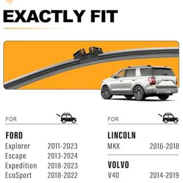 Show more If you're looking to enhance the performance of your vehicle's rear visibility, our Rear Wiper Blade Replacement is just what you need. Designed specifically for Ford and Lincoln models, this high-quality wiper blade is compatible with a range of vehicles, including the Ford Explorer (2011-2023), Ford Escape (2013-2023), Lincoln MKX (2016-2018), and Lincoln MKC (2015-2019). It's 100% brand new and matches the fit and function of the original wiper, ensuring optimal performance.