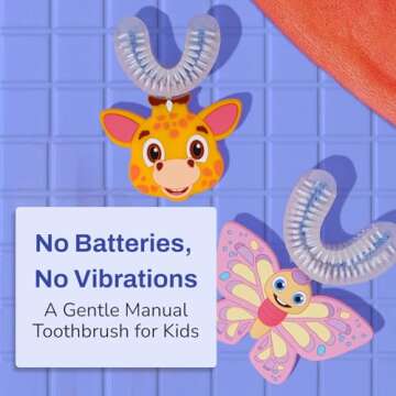 Introducing the autobrush U Shaped Kids Manual Toothbrush, a revolutionary dental care tool designed specifically for children aged 3 to 5. This toothbrush is not only about keeping little smiles bright; it also caters to kids with sensory sensitivities by providing a gentle, vibration-free clean. The thoughtful design features a playful giraffe theme, making brushing an enjoyable adventure rather than a chore, and encourages kids to develop healthy habits early.