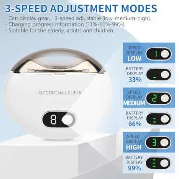 This state-of-the-art nail care device features a hidden blade design that ensures there are no exposed sharp edges, which means you can comfortably trim nails without the fear of cuts or scratches. The three adjustable speed settings (high, medium, and low) cater to different nail types and user preferences, ensuring a customized trimming experience every time. Simply press to adjust the speed, making it an ideal choice for everyone from toddlers to adults.