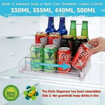 Automatic Soda Can Organizer for Refrigerator Can Dispenser for Beer Soda Seltzer Drink Pop Can Holder Self-Pushing Drink Organizer for Fridge Storage 12 cans of 11.15oz 12oz 16oz 16.9oz