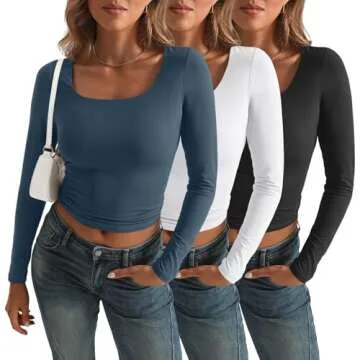 AUTOMET 3 Pack Womens Long Sleeve Shirts - Chic Y2K Crop Tops for All Occasions