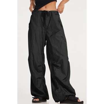 AUTOMET Cargo Pants Women Baggy Y2k Pants Drawstring Parachute Pants Black