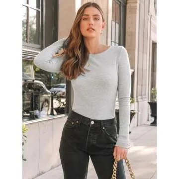AUTOMET Long Sleeve Shirts for Women Ribbed Knit Fall Tops Casual Basic Fitted T Tshirts Tight Underscrub Slim Cotton 2024 Trendy Teen Outfits Fashion Cute Clothes Going Out Undershirt Heather Grey S