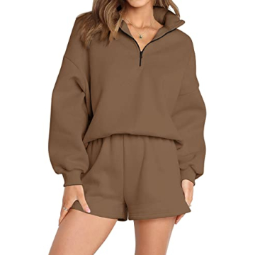 Show moreExperience ultimate comfort and style with the AUTOMET Lounge Sets Women's Oversized 2 Piece Workout Spring Outfits. Designed for warm relaxation, this fashionable loungewear set combines a cozy V-neck hoodie and high-waisted shorts, making it a perfect addition to your spring and fall wardrobe. Crafted from a premium blend of 50% Polyester and 50% Cotton, the fabric is not only thick and soft but also offers warmth thanks to its plush fleece lining. Whether you're lounging at home, heading to a casual gathering, or enjoying a day out, this loungewear set provides the perfect mix of chic and comfort, setting the tone for effortless style any time of the day.
