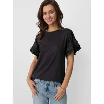 Show moreDiscover the perfect blend of elegance and comfort with our AUTOMET Women's Casual Short Sleeve T Shirts. Embracing the 2025 fashion trend, this dressy top seamlessly transitions from a professional environment to a casual outing without missing a beat. Crafted with high-quality, skin-friendly fabrics, this shirt boasts a lightweight and ultra-soft feel, ensuring you stay cool and comfortable during those warm summer months. The thoughtful ruffle sleeve design along with unique lettuce trim cuffs add a stylish twist, making this piece a chic addition to your wardrobe.