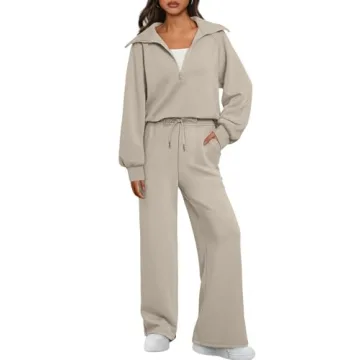 Show moreIntroducing the AUTOMET Women’s 2 Piece Outfits – a perfect blend of style and comfort for the modern woman! This stunning matching set features a long sleeve half zip sweatshirt and wide leg sweatpants, making it an essential addition to your fall wardrobe. Made from a rich fabric blend of 55% Rayon, 40% Polyester, and 5% Spandex, this loungewear combo not only feels incredibly soft but also provides just the right amount of warmth to keep you cozy during cooler days. Whether you're heading out for casual errands or lounging at home, this outfit is designed to make you feel stylish and comfortable at all times.