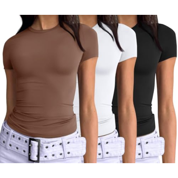Show more Discover the ultimate blend of style, comfort, and versatility with the AUTOMET Women’s 3 Piece Short Sleeve Shirt Pack. This amazing ensemble includes black, white, and red hues, perfect for any occasion. These tops are designed to be more than just t-shirts; they are a fashion statement. Engineered with a smooth, flexible fabric reminiscent of under armor, they glide over your form without riding up or bunching. You'll feel the freedom of movement thanks to the generous elasticity that easily accommodates various chest sizes, making these tees a perfect fit for everyone.