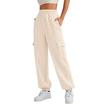 AUTOMET Womens Cargo Sweatpants - High Waist Athletic Joggers with Pockets