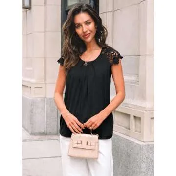 Show moreIntroducing the AUTOMET Women’s Casual Dressy Top, a timeless addition to your wardrobe that seamlessly blends elegance with comfort. Perfectly crafted for the modern woman, this top features exquisite lace cap sleeves that add a delicate touch to its chic silhouette. The pleated front design not only enhances style but also provides a fashionable drape that flatters every body type. Made from a high-quality mix of 82% Polyester, 12% Rayon, and 6% Spandex, this top ensures breathability and a soft feel against your skin, making it an ideal choice for those warm summer days or as a stylish layering piece in the spring and fall.