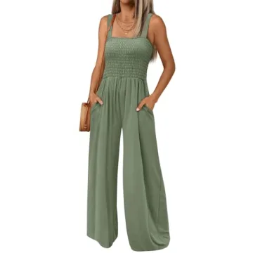 Show more Introducing the AUTOMET Women's Jumpsuits Casual Jumpers Summer Rompers — your new must-have for effortless style and supreme comfort! Crafted from an exquisite blend of 95% rayon and 5% spandex, this jumpsuit is designed to adjust to your body while providing a luxurious feel against your skin. The lightweight and breathable fabric guarantees you'll stay cool during those hot summer days, making it an essential addition to your wardrobe. Available in a fashionable green hue, this stylish piece features a v-neck design and spaghetti straps that create a flirty yet chic look.