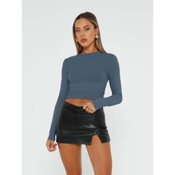 AUTOMET Womens Long Sleeve Shirt Basic Crop Tops Fall Fashion Underscrubs Layer Slim Fit Winter Clothes Black White Haze Blue XS