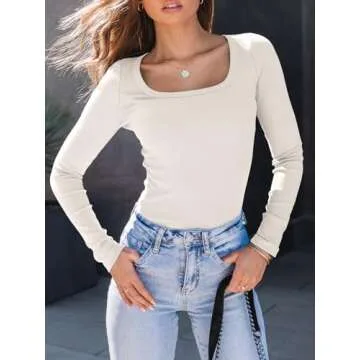 AUTOMET Womens Long Sleeve Shirts Square Neck Tops Ribbed Knit Fitted Casual Basic Tees Slim Fit Fall Outfits Fashion Clothes