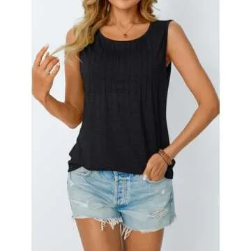 Show moreIntroducing the AUTOMET Women's Loose Fit Casual Flowy Tank Tops – your new go-to wardrobe staple for any casual occasion! Expertly designed for comfort and style, this trendy sleeveless summer top is crafted from a unique blend of 82% polyester, 12% rayon, and 6% spandex, ensuring it remains soft, lightweight, and breathable. You’ll love how the fabric has a gentle stretch that fits beautifully without clinging, making it the perfect choice for layering or wearing solo. With a classic crew neck and flowing silhouette, this tank top transitions effortlessly from day to night, offering versatility that suits your busy lifestyle. Available in sleek black, you can easily dress it up for a night out or keep it casual for lunch with friends.