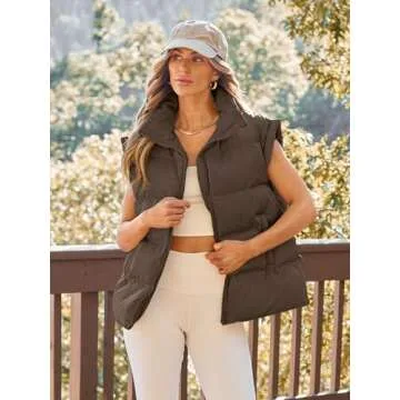 AUTOMET Womens Puffer Vests Fall Fashion Jackets Puffy Outfits 2025 Trendy Sleeveless Coats Outerwear Winter Clothes Brown M
