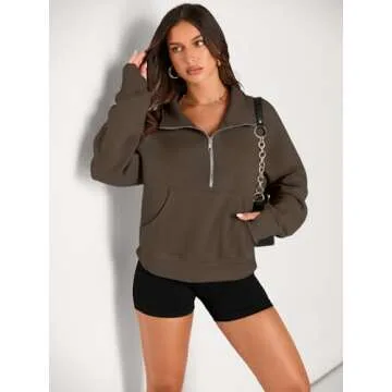 AUTOMET Womens Sweatshirts Half Zip Cropped Pullover Fleece Quarter Zipper Hoodies 2025 Fall Fashion Outfits Clothes Coffee Medium