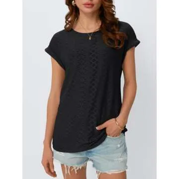 Fashion Designs: Womens summer shirts designed with cap sleeve, crewneck,solid color,eyelet embroidery design,dressy blouse suit for spring and summer.