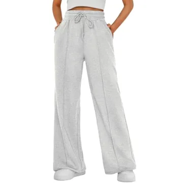 AUTOMET Women's Wide Leg Sweatpants - Flare Lightweight Baggy Joggers - Gray L