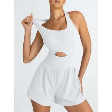 AUTOMET Womens Workout Rompers Jumpsuits Casual One Piece Bodysuits Sleeveless Outfits Yoga Fashion Pilates Tank Top White XS