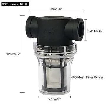 Show moreIntroducing the AutoRocking 3/4" Female NPT in-Line Strainer, your ultimate solution for ensuring clean and clear water flow in your garden hose, RV, or outdoor applications. Designed with a robust 100 mesh stainless steel filter screen, this sediment filter effectively captures dirt, debris, and scum, allowing you to enjoy crystal clear water every time you use your hose or water tank. Built with premium materials including stainless steel and nylon, this filter is both durable and resistant to wear, ensuring it can withstand the demands of outdoor use.