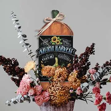 Autumn Harvest Pumpkin Wood Sign by StudioR12 | Fall Home Decor | Gourd Sunflower Leaves | Hayrides Apple Cider | 13 x 6.5 INCHES
