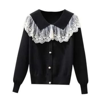 Autumn Winter Knitted Lace Doll Collar Cardigan - Elegant Women’s Fashion Sweater
