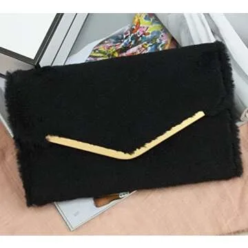 Autumnwell Black Faux Fur Clutch Purse Evening Bag for Women,Envelope Handbag With Detachable Chain for Wedding and Party