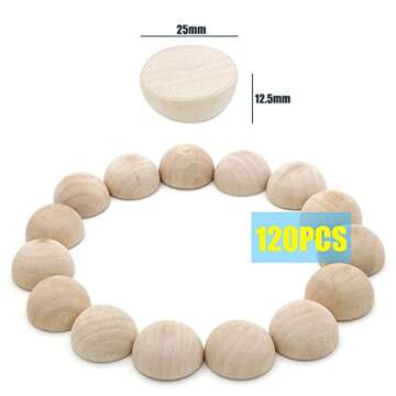Auvoau 120Pcs Half Wooden Beads - Unfinished Natural Wood Balls for Crafting