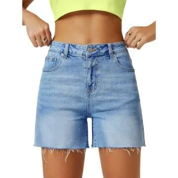AUWUKA Womens High Waist Jean Shorts Wide Straight Leg Microelastic Long Denim Mom Shorts