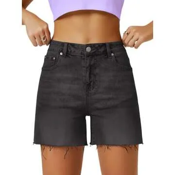 AUWUKA Womens High Waist Jean Shorts Wide Straight Leg Microelastic Long Denim Mom Shorts
