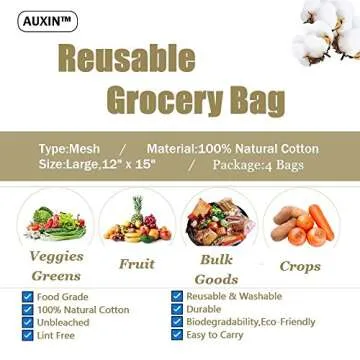 AUXIN Reusable Grocery Cotton Mesh Produce Bags - Eco-Bag for Fruits, Vegetables
