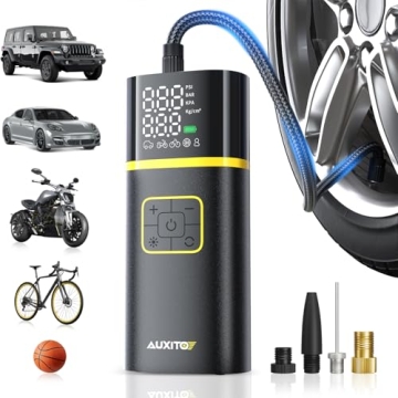 Introducing the AUXITO portable air compressor, your ultimate companion for hassle-free tire inflation on the go. This robust device is powered by a high-performance motor and upgraded air cylinder, designed to inflate a standard car tire (195/60 R16) from 0psi to 36psi in just 7 minutes, cutting down your waiting time significantly. Imagine never having to stop at a gas station just to ensure your tires are properly inflated! This innovative compressor not only saves time but offers convenience that every...