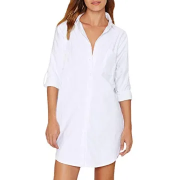Show moreElevate your wardrobe with the Auxo Women's Long Sleeve Button Down Shirts. Crafted from premium 100% cotton, this tunic blouse offers a luxurious feel against your skin while ensuring breathability and comfort throughout the day. With a sophisticated design that features a classic collar, button-down front, and a curved hem, this shirt dress is the epitome of stylish versatility. The lightweight fabric makes it perfect for layering, while the chic roll-up sleeves add a contemporary touch.