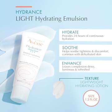 Show moreIntroducing the Avène Hydrance LIGHT Hydrating Emulsion, a luxurious daily face moisturizer designed specifically for normal to combination dehydrated sensitive skin. This non-comedogenic formula effortlessly hydrates while protecting your skin from daily aggressions. Formulated with a unique blend of ingredients that not only moisturize but also shield your skin from the drying effects of the sun, this lightweight emulsion is your skin's best defense against premature aging and environmental stressors.