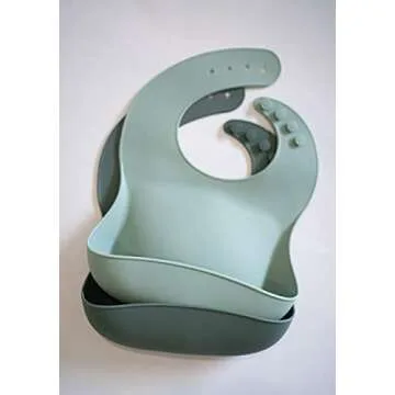 AVA + OLIVER Waterproof Silicone Bib Set with Adjustable Neck - Durable Silicone Bibs for Babies and Toddlers - Deep Food Catcher Pocket Bib for Mess-free Mealtimes - Set of 2 (Forest)