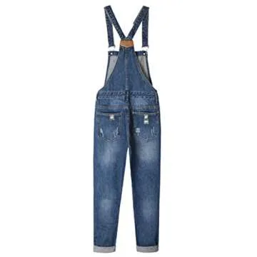 AvaCostume Women's Adjustable Strap Ripped Denim Overalls DarkBlue XXL