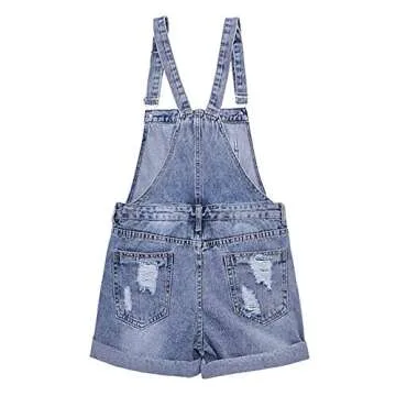 AvaCostume Womens Wash Jumper Denim Overall Shorts, L