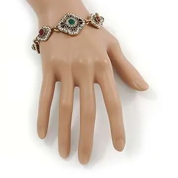 Avalaya Vintage Inspired Turkish Style Crystal Filigree Bracelet In Bronze Tone (Clear, Green, Burgundy Red) - 18cm L