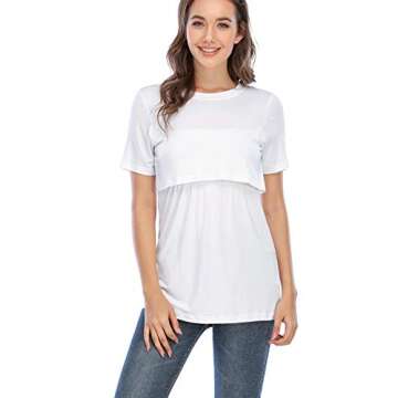 Show moreAvalica Women's Nursing Tops for Breastfeeding offer a beautifully crafted solution for moms seeking comfort and convenience during the breastfeeding journey. Made from high-quality, ultra-soft fabric, these tee shirts are specifically designed with a double layer that allows for easy and discreet nursing access, making them perfect for both pregnancy and postpartum wear. The elegant short sleeves ensure breathability, while the classic white color adds versatility to any wardrobe. Available in sizes up to 2XL, these tops prioritize both style and practicality, making them an essential addition to your maternity clothes collection.