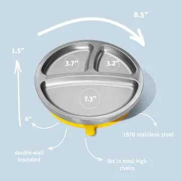 Avanchy Baby Plates with Suction – Stainless Steel Divided Plates for Toddlers, BPA-Free, Dishwasher Safe, Unbreakable, Non-Toxic, 100% Silicone Suction – Green