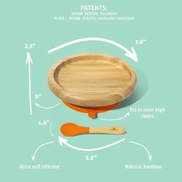Avanchy Classic Baby Plates Non Divided Bamboo with Suction for Babies Kids Toddler Food with Silicone Spoon for Feeding, White