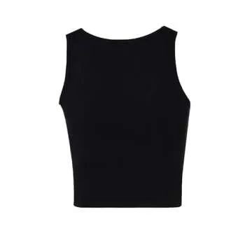Avanova Women Graphic Sleeveless Crop Tops Ribbed Knit Top Scoop Neck Tank Casual T Shirts Letter Black X-Large