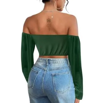 Show moreIntroducing the Avanova Women's Off Shoulder Asymmetrical Hem Slim Fit Long Sleeve Crop Top in a stunning Dark Green shade, a fashion-forward piece that effortlessly blends sophistication with a touch of playful charm. This crop top is designed to elevate your wardrobe with its unique asymmetrical hem that adds a modern flair to classic styling. With a slim fit that hugs your curves in all the right places, this top is crafted from high-quality materials to ensure a comfortable yet stylish fit. Whether you're dressing up for a night out or keeping it casual, this versatile piece is a must-have for every fashionista.
